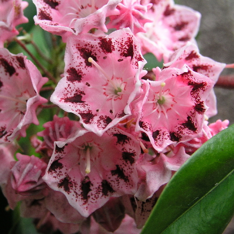 Редкое еще в наших садах декоративное растение. Кальмия широколистная – один из эффектных представителей кальмий. Выведено множество сортов с невероятно окрашенными цветами. Высота куста может достигать 1,5-2 метра. Цветки светло-красные с белым цетром и каймой, в соцветиях. Цветёт в июне очень обильно и продолжительно. Для солнечных и полутенистых мест. Растение очень декоративно и способно переносить временную засуху. Обильный полив важен поздней осенью, при подготовке кальмии к зиме. Два-три раза в сезон с апреля до середины июня растения подкармливают. После обильных дождей и при сильном уплотнении почвы проводят рыхление. Зимостойкость: 4 зона. Кальмия распространена в садах США, Канады и Европы, где широко выращивается из-за своих привлекательных цветков. Выведено множество сортов с различной окраской цветков. В наших садах кальмия пока еще большая редкость. Однако она заслуживает внимания садоводов, т.к. очень перспективна для садов средней полосы с суровыми зимами.