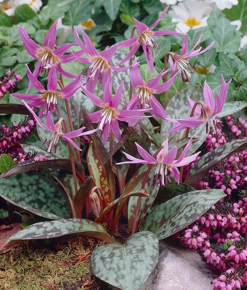 Клубне-луковичный симпатичный и неприхотливый многолетник. Первоцвет. Высота - до 25 -40 см. В народе кандык называют "собачий зуб". Цветы крупные, цикламеновидные, парные или по 3-5 штук, чаще поникшие на безлистных цветоносах. Листья - достаточно крупные зеленые, иногда с мрамором. Время цветения - апрель — май. Любит затенение, и поэтому растению можно отвести полутенистые уголки сада или высаживать под деревьями и кустарниками,пока последние еще не распустились эти первоцветы успевают процвести. Кандык можно посадить с северной стороны постройки. Зимует растение без укрытия.