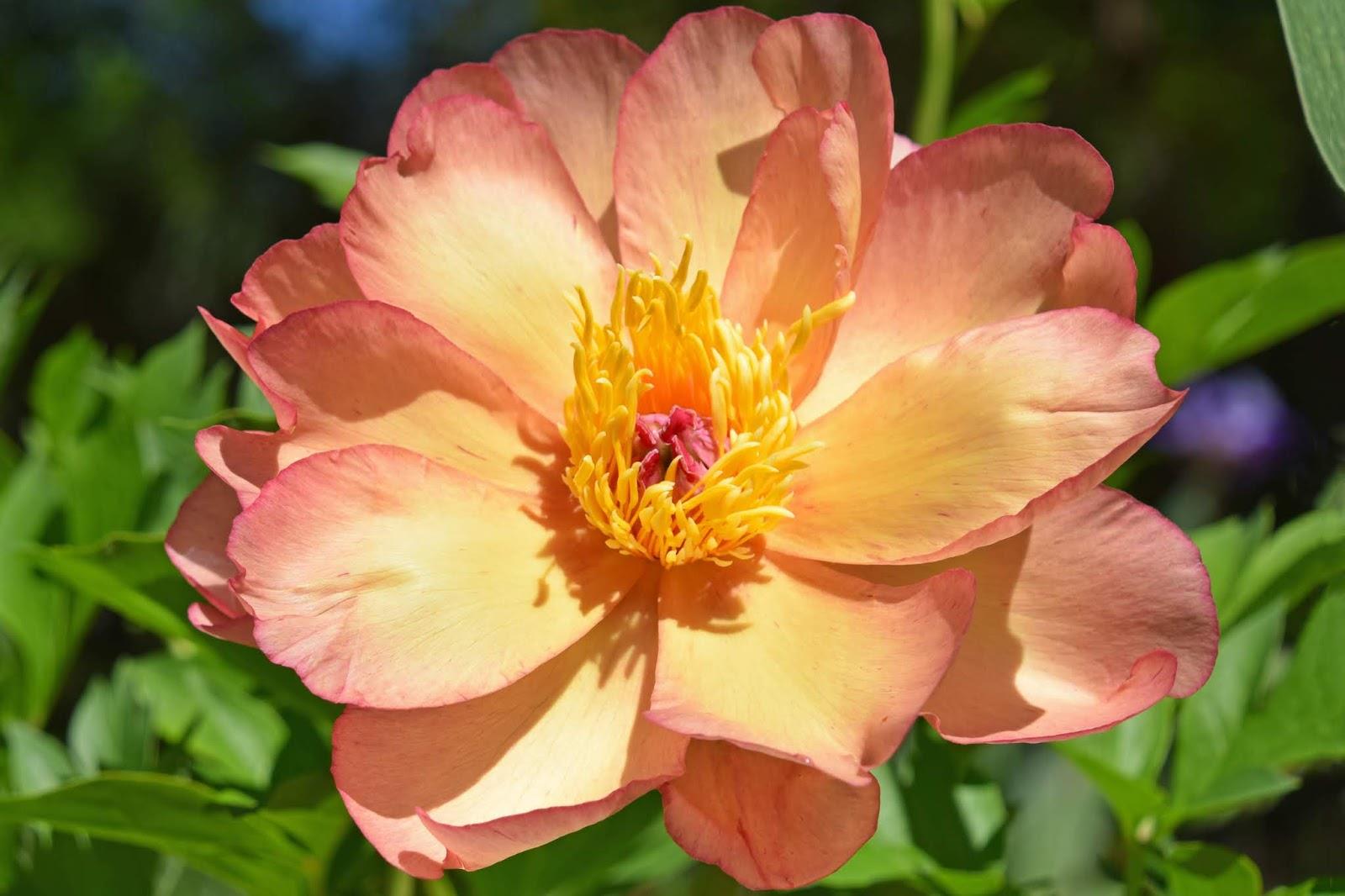 Выведен сравнительно недавно. Высокий, вырастает до 80 сантиметров. Большое количество полумахровых крупных цветов интересной окраски – жёлтые с розовым, издали они кажутся оранжевыми.