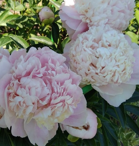 Махровый, крупный, бомбовидный, нежно-розовый с гофрированным центром, окружённым одним или двумя рядами наружных лепестков, ароматный. Средний срок цветения. Крупный, густо набитый, зефирный, светло перламутрово бежевато-розовый, нежнейший теплый цвет, стебли прочные, имеет сильный пионовый аромат-все качества этого сорта на 5 баллов!!!