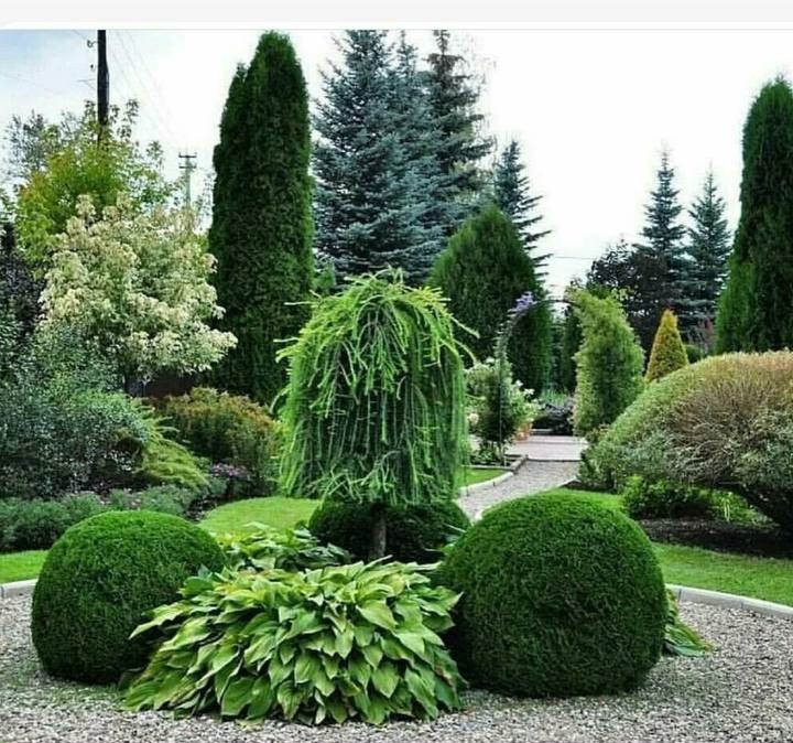 Очень живописно выглядят в саду разнообразнейшие “шарики” из многочисленных карликовых сортов елей, сосен или пихт.