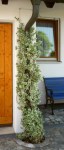 Густой, ползучий кустарник, некоторые побеги слегка подняты вверх, может подниматься по опоре. В европейских странах этот кустарник вполне обычен, его часто можно увидеть на улицах городов, в скверах и частных садиках. Чудесные вечнозеленые ковры, очаровательные куртинки и бордюрные ленты – все это способен создать бересклет Форчуна, вечнозеленый зимостойкий стелющийся кустарник. И хотя наши ландшафтные дизайнеры всё чаще применяют это растение для создания чудесных композиций, дачники в силу малой осведомлённости о его качествах, не балуют его вниманием, оставляя выбор за более распространёнными кустарниками. Между тем, данное растение очень зимостойко в садах средней полосы и вполне способно внести свой шарм в создание уютного сада. Высота 0,3-0,4 м, ширина 0,3-0.8м. Листья зеленые с белой каймой, зимой кайма белая или малиново-розовая, кожистые, блестящие, 2-4 см длиной. Корневая система поверхностная, разветвленная, очень чувствительна к уплотнению почвы. Зимует без укрытия в садах средней полосы. Хорошо переносит стрижку. Местоположение: солнце, полутень. Почва: к почве не требователен, но лучше растет на плодородных, рыхлых, хорошо дренированных почвах с нейтральной реакцией. В ландшафтном дизайне - чрезвычайно универсальное растение. Можно высаживать в качестве декоративных живых изгородей или как наземный вечнозеленый ковер. Может подниматься на стволы деревьев в качестве вертикального озеленителя, стены или деревянные лестницы на подобии лозы.