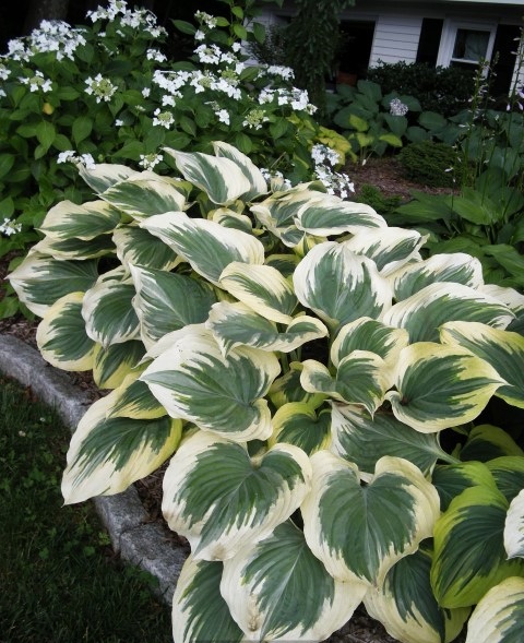 Спорт тетраплоид от легендарного сорта Victory! Листья очень плотные сердцевидной формы, слегка чашевидные, блестящие. Зеленые с широкой желто-кремовой каймой.