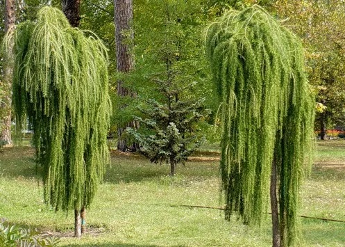 Лиственница (Larix) — плакучая форма на штамбе.