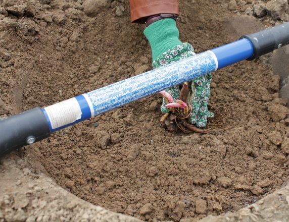 Аккуратно засыпаем корневище пиона землей, слегка уплотняя ее руками, чтобы не повредить почки. Ни в коем случае не следует утаптывать землю ногами.